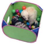 The Pop-N-Play Ball Pit is a flexible framed box made of fabric. There are rounded corners and two holes for a ferret to jump inside it. This box is filled with 35 small balls included in a pit. They are bright and colorful allowing a ferret to have to dig fun.