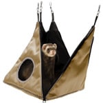In this tent, the ferret will have a secure and silent sleep any time of the day. There is enough space for every small creature as it is 11 inches wide and long and 14 inches high. The exterior of the tent is available in different colors, while the fleece interior is always black to calm the pet down. The animal will like hiding in its small home as well as enjoy to swirl or swing in it.